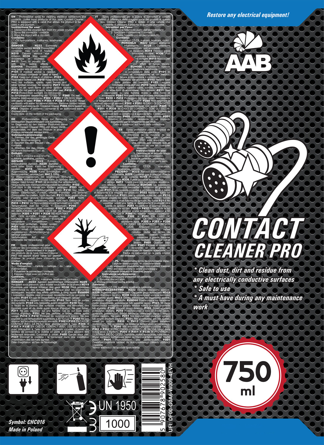 - Tarnished contacts, dirt and grease on cables, clamps and switches, visible dust, tarnish or black deposits on fuses, switches or starters? AABCOOLING Contact Cleaner PRO will deal with them.